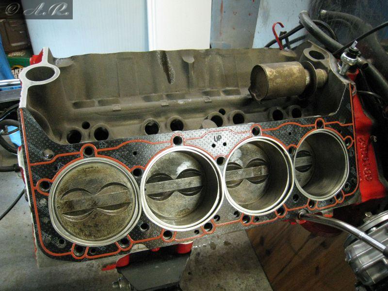 Engine block well cleaned, main bearings, pistons and new rod bearings also in place.